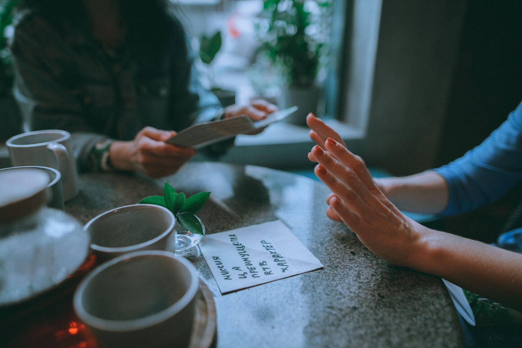 Встречаемся в уютном кафе. В непринуждённой обстановке легче приходят интересные идеи.